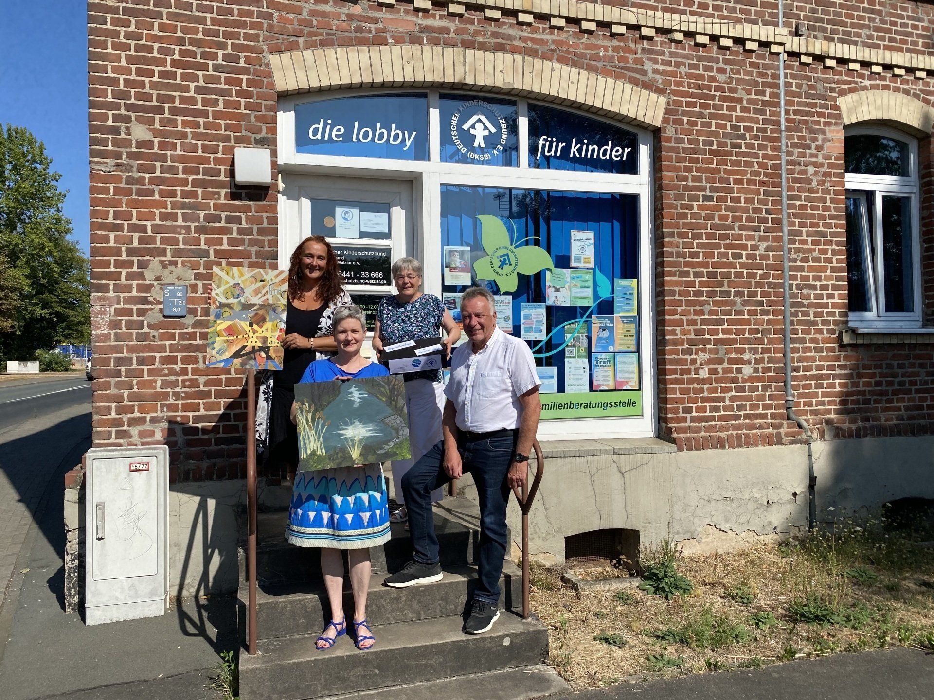 Zum Abschluss des Projektes „Lahn-Dill-Wasser“ der Region Lahn-Dill-Wetzlar fanden dieses und vergangenes Jahr drei Vernissagen statt. Die Teilnehmenden nahmen an Workshops teil, in denen sie unter Begleitung des Künstlers Josef Krahforst Bäche, Flüsse oder Weiher der Region künstlerisch in Szene setzten. Die Vernissagen gaben den Teilnehmenden die Möglichkeit, ihre Bilder gegen eine kleine Spende für den Kinderschutzbund Wetzlar zurückzuerwerben. Nicht nur die Künstlerinnen und Künstler freuten sich darüber, zugleich etwas Gutes getan zu haben. Auch den Vorständlerinnen des Kinderschutzbundes konnte damit ein Lächeln auf die Lippen gezaubert werden. Ganze 490€ sind durch die Kunstwerke zusammengekommen! „Es ist uns eine besondere Freude, dass die Spende Kindern zugutekommt. Denn unsere Kinder formen die Zukunft – auch in der Region Lahn-Dill-Wetzlar,“ betonte Wolfgang Keller bei Übergabe der Spendenbox.