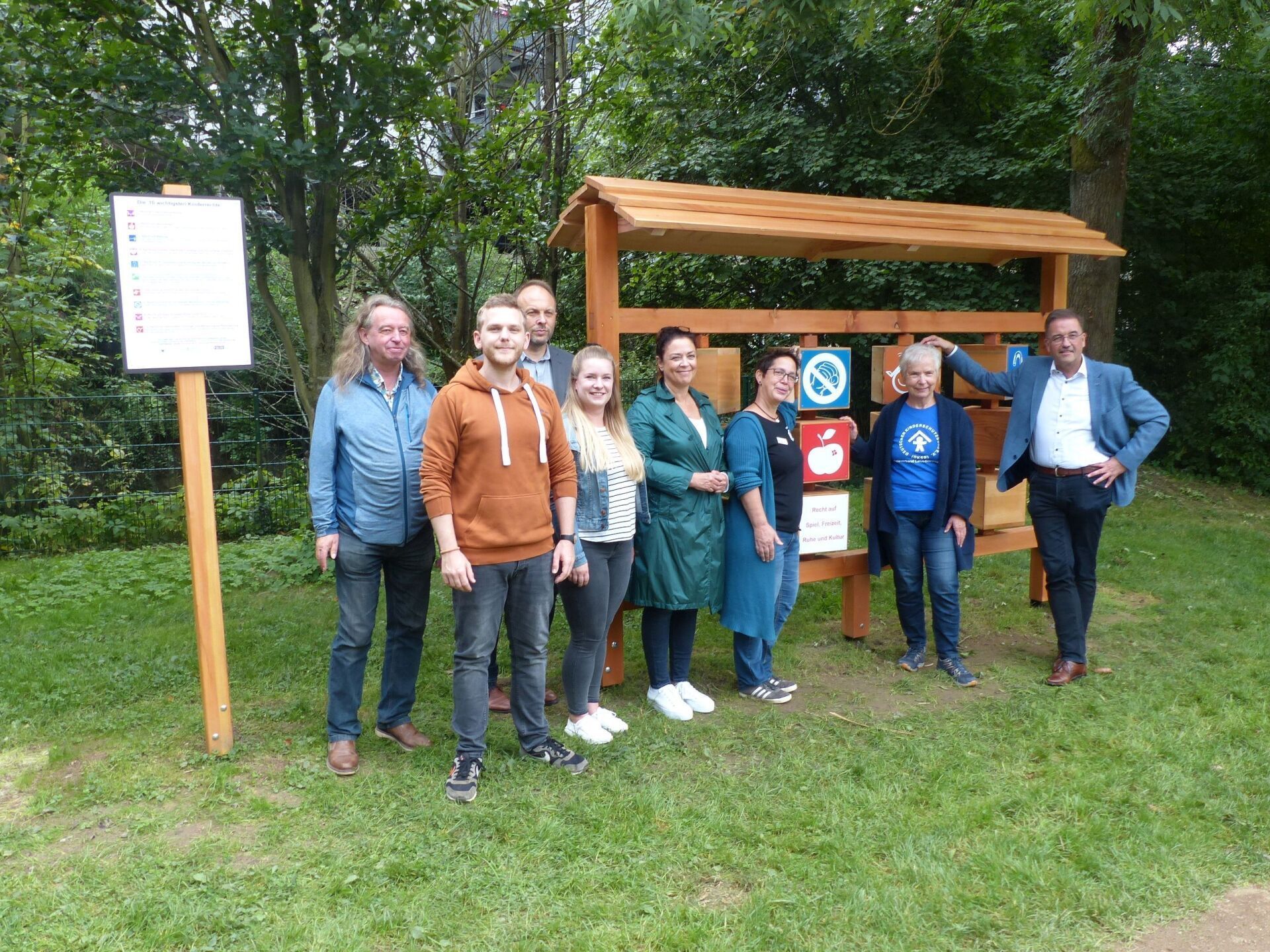 Das Foto zeigt die Mitglieder des Arbeitskreises Kinder-und Jugendrechte, den Jugendamtsleiter Herrn Wüst, Gudrun Geißler vom Kinderschutzbund sowie OB Manfred Wagner.