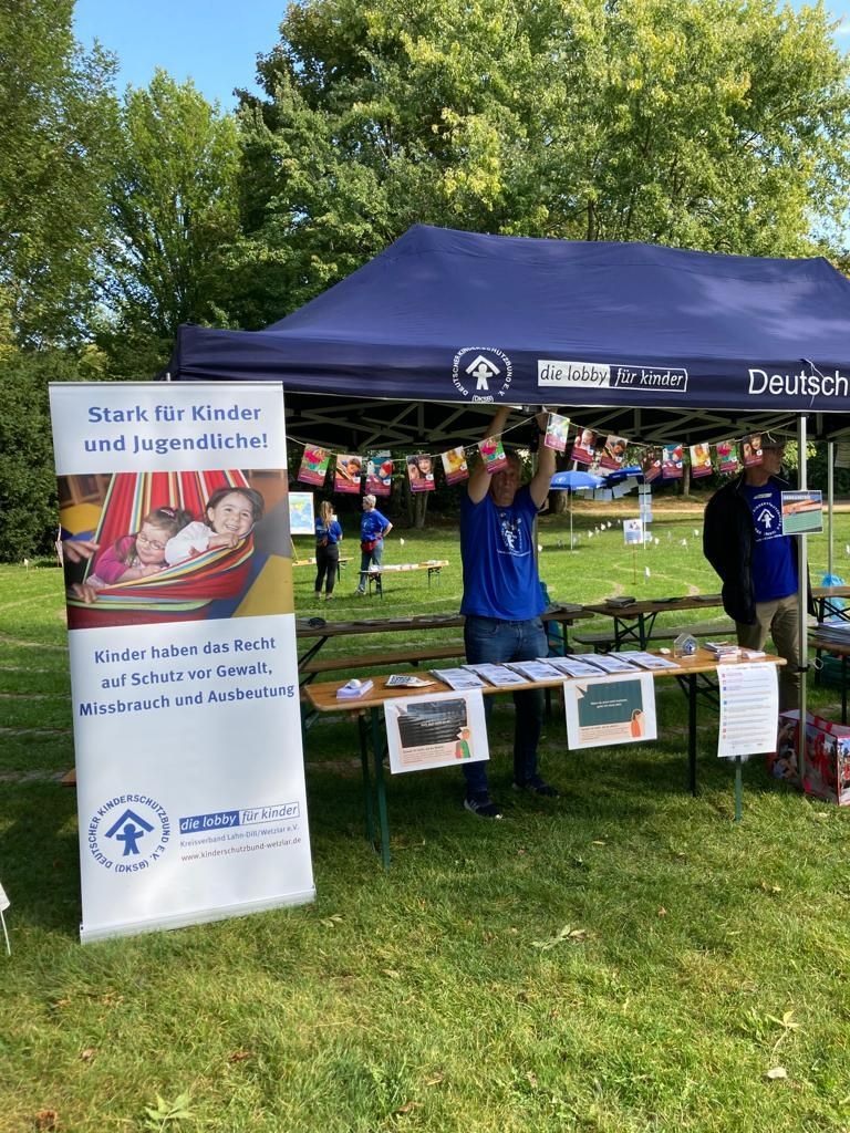 Auch der Kinderschutzbund Kreisverband Lahn-Dill/Wetzlar war mit einem Infostand und einem Bastelangebot vor Ort. Bis zur letzten Minute dieses schönen und sonnigen Tages wurde intensiv und kreativ gemalt und gebastelt. Die Kinder hätten noch gerne weitergemacht, aber es war Zeit nach Hause zu gehen.