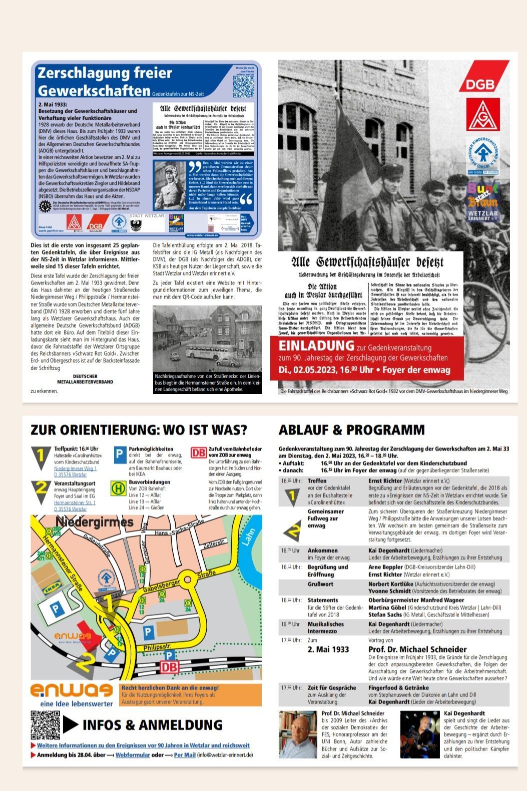 Am 2. Mai 2023 wurde der Zerschlagung der freien Gewerkschaften durch die Nazis vor 90 Jahren gedacht.